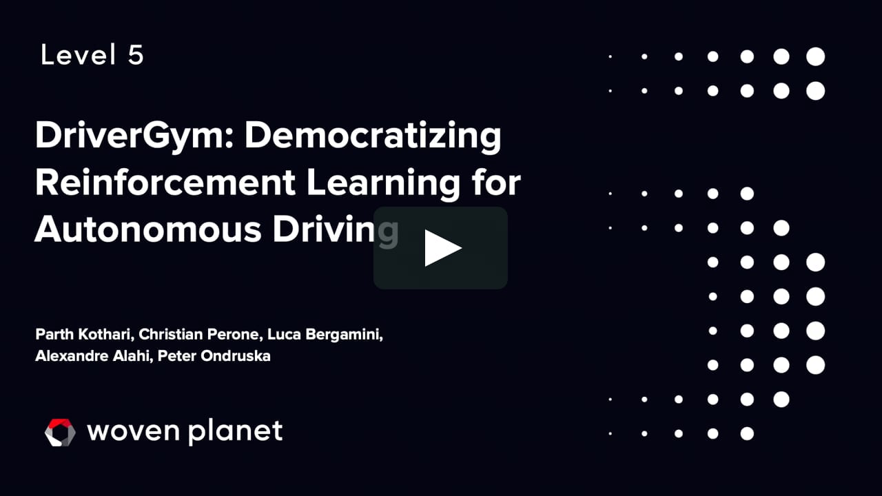 by Woven Planet Level 5This is "DriverGym: Democratizing Reinforcement Learning for Autonomous Driving" by Woven Planet Level 5 on Vimeo, the home for high quality videos and…vimeo.com · Dec 6, 2021 · Published: Dec 2, 2021 · Video