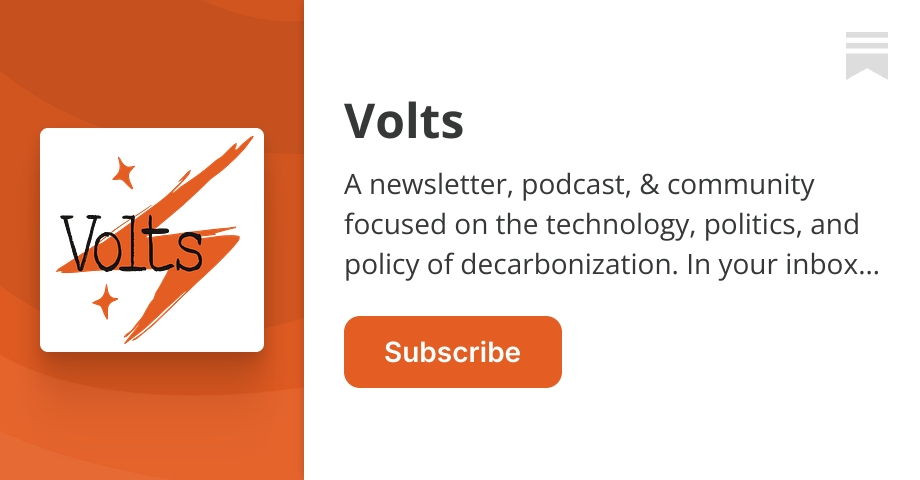 by David RobertsA newsletter & podcast about the technology, politics, and policy of decarbonization. Twice a week, give or take. Click to read Volts, by David Roberts, a...volts.wtf · Jan 9 · Published: ~Jan 6 · Website