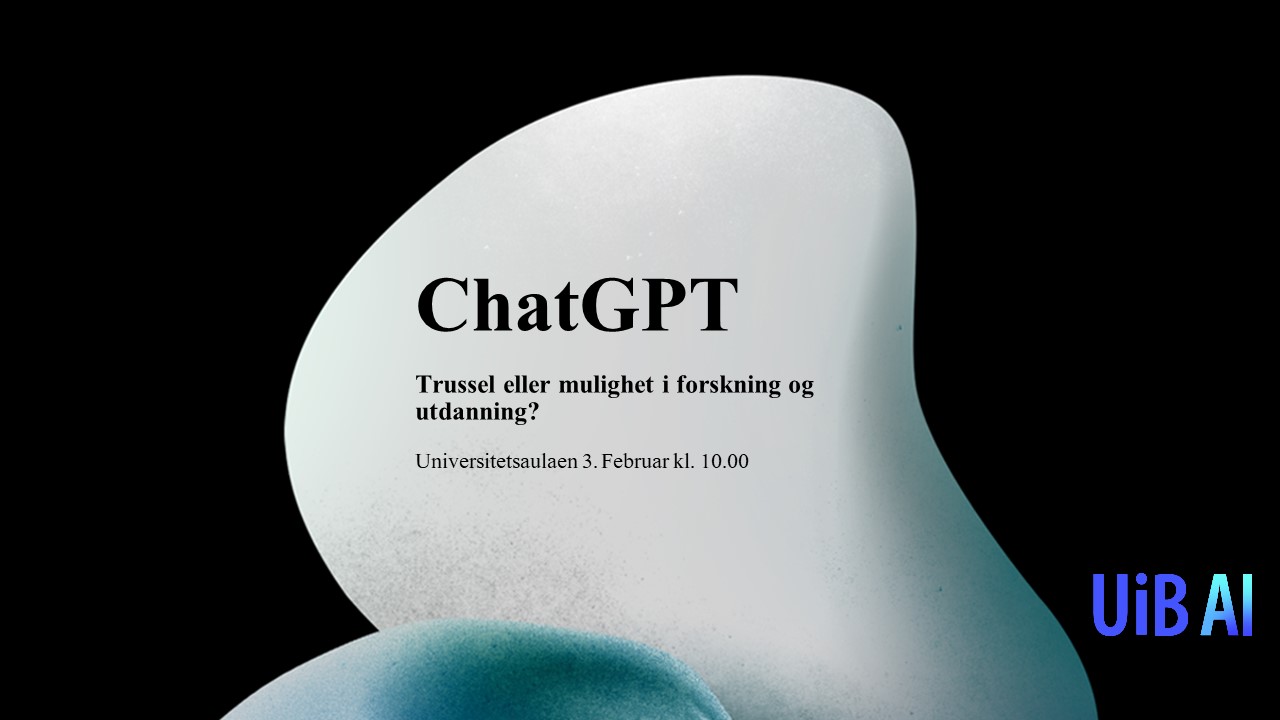 Bli med på årets første UiB AI seminar der vi tar opp den aktuelle diskusjonen rundt ChatGPT og hvilken betydning utviklingen innen AI-verktøy har for...uib.no · Jan 16 · Published: Jan 9