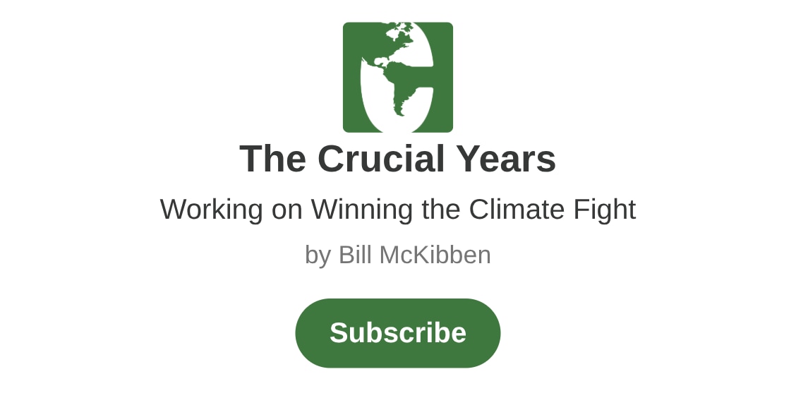 by Bill McKibbenWorking on Winning the Climate Fight. Click to read The Crucial Years, by Bill McKibben, a Substack publication with tens of thousands of readers.billmckibben.substack.com · May 18