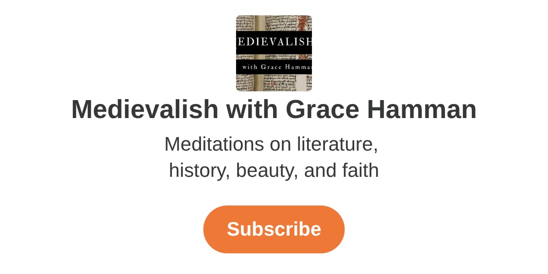by Grace Hammana monthly newsletter on literature, theology, and what I’ve been enjoying lately. Click to read Medievalish with Grace Hamman, a Substack publication with...gracehamman.substack.com · May 12