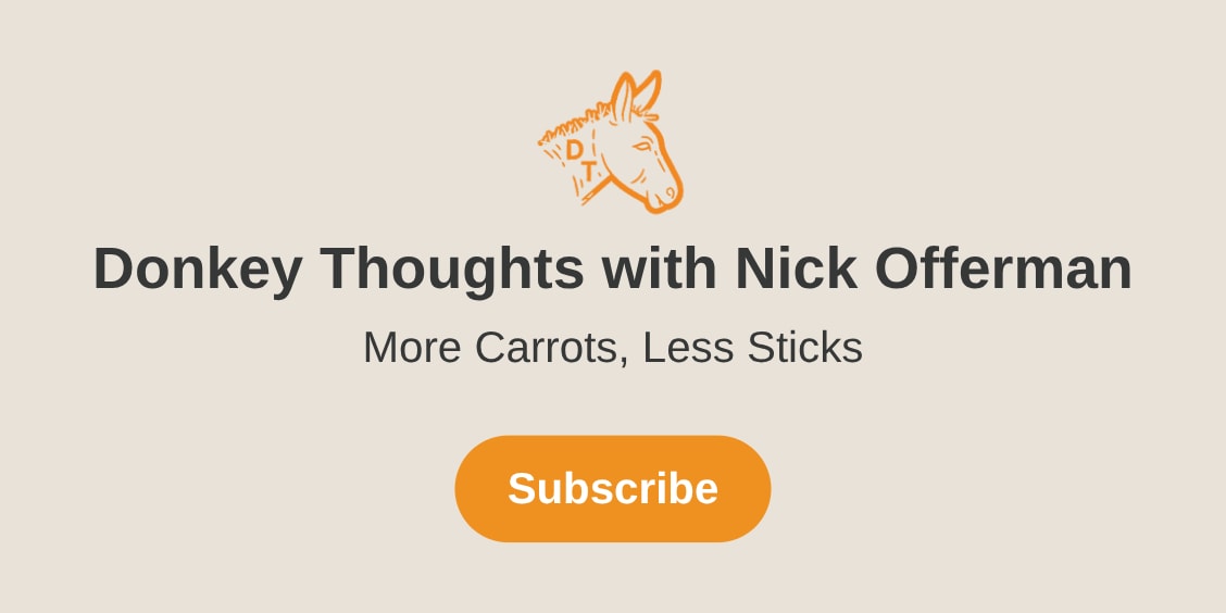 by Nick OffermanMore Carrots, Less Sticks. Click to read Donkey Thoughts with Nick Offerman, a Substack publication with tens of thousands of readers.nickofferman.substack.com · May 17