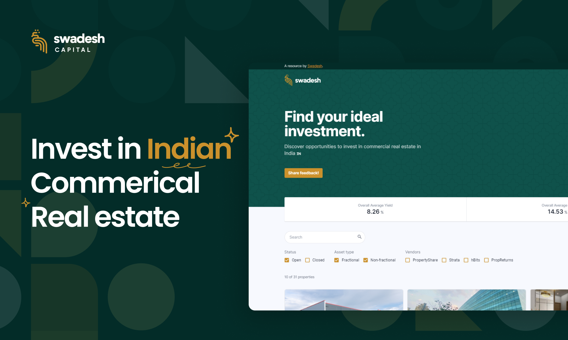 Swadesh Capital - Find your ideal commercial real estate investment in India | Product Hunt