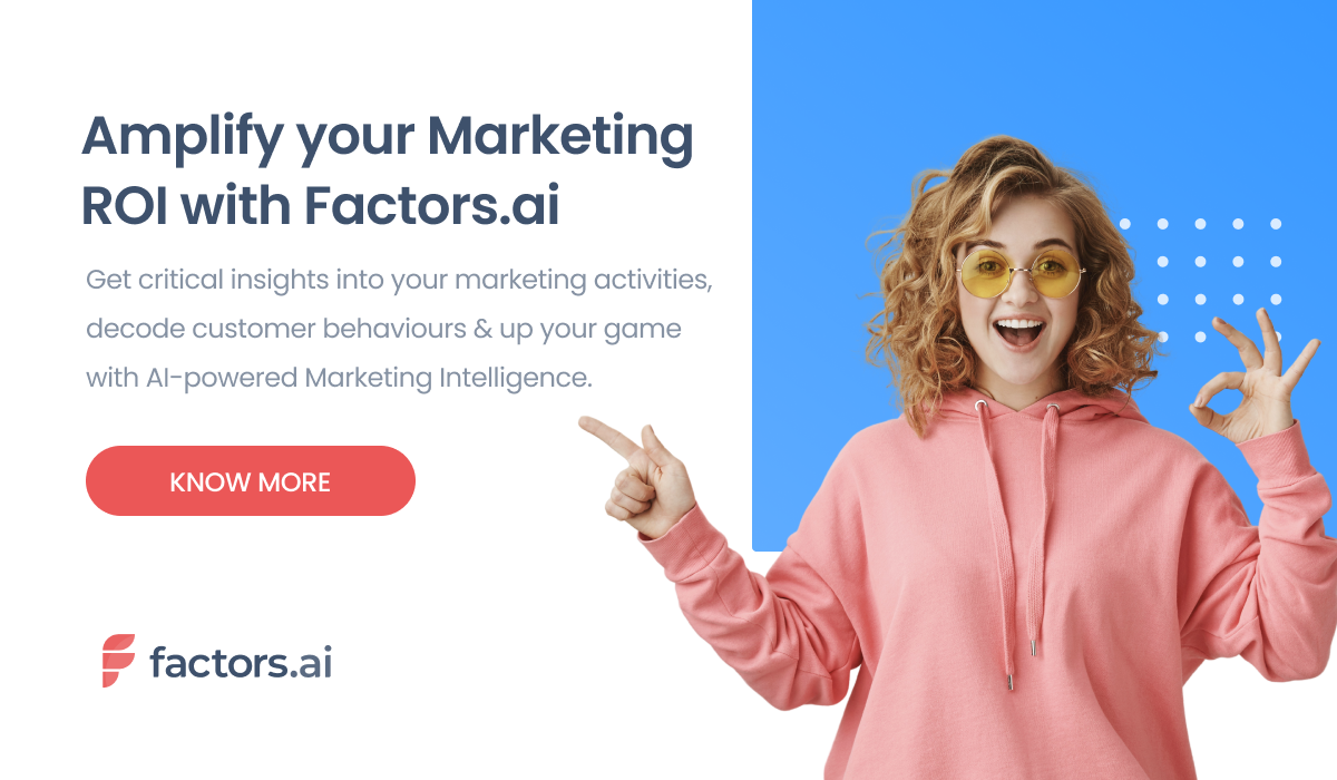 Factors.AI is an end-to-end marketing analytics platform that integrates across data silos to deliver focussed AI-fueled actionable insights. Try now!factors.ai · Sep 8, 2021